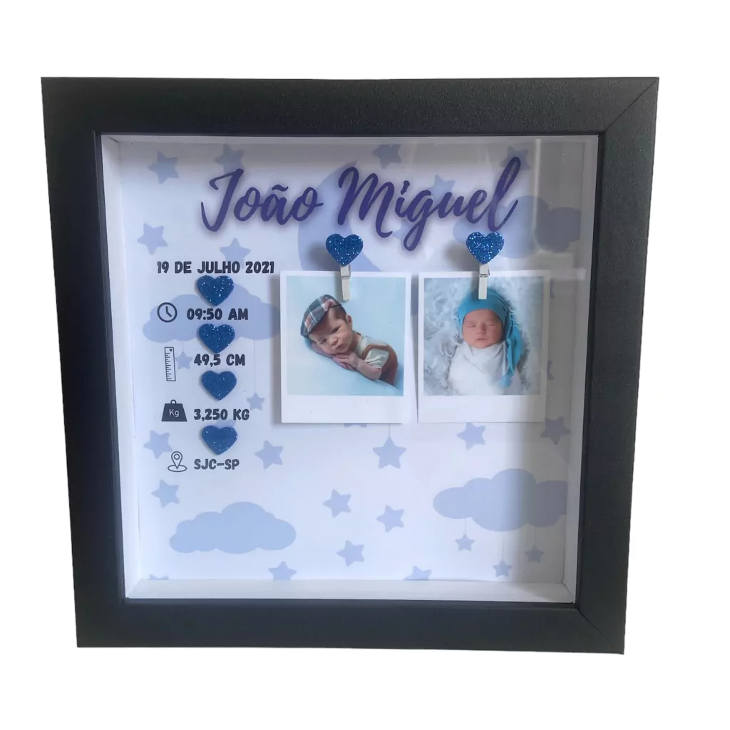 O Quadro Eternização do bebê, vem com a proposta de eternizar os objetos mais lindos da lembrança de nascimento.